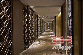 酒店內(nèi)的天花則采用木紋鋁單板天花,目的是為了讓空間更加平整,寬敞,也與五星級(jí)酒店形成呼應(yīng)。