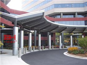 應(yīng)用產(chǎn)品:氟碳弧形穿孔包柱鋁單板,銀色陽極氧化鋁單板,包柱鋁單板