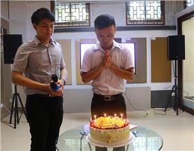 今天是八和建材鋁單板廠(chǎng)家銷(xiāo)售部紀(jì)主管的生日,因?yàn)橹浪裉煲霾?,所以我們后勤部的同事昨天就已?jīng)訂好了生日蛋糕,準(zhǔn)備在早會(huì)時(shí)間給他一個(gè)大大的驚喜。當(dāng)早會(huì)進(jìn)行到尾聲,燈光全部熄滅,端出精美的生日蛋糕,隆重請(qǐng)出我們今天的壽星??梢钥吹剿哪樕蠞M(mǎn)滿(mǎn)都是感動(dòng),是的,八和之家就是這樣一個(gè)大家庭,隨時(shí)給你家的感覺(jué)和溫暖,讓獨(dú)自在異鄉(xiāng)拼搏的我們隨時(shí)都有被愛(ài)的感覺(jué),不再感覺(jué)孤單寂寞。真誠(chéng)的語(yǔ)言祝福和內(nèi)心滿(mǎn)滿(mǎn)的感恩,我們的紀(jì)主管今天被大家誠(chéng)摯的語(yǔ)言所感動(dòng)著,幸福著。他伴隨八和建材鋁單板廠(chǎng)家走過(guò)了5年的崢嶸歲月,相信我們的八和建材也會(huì)陪伴他走過(guò)以后更長(zhǎng)的歲月。