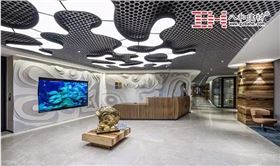 過道天花則采用沖孔鋁單板,除了觀賞性極佳之外,吸引效果好,寬敞通透。
