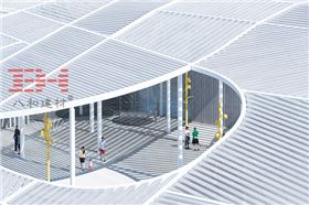 該建筑最具有特色的是它宏偉的華蓋,這已經(jīng)成為了該博物館的標(biāo)志性元素。我們?cè)谠O(shè)計(jì)上創(chuàng)造出了一種波浪形狀,就像一起伏的被子,并且在整個(gè)場(chǎng)地和建筑的上方都安裝了鋁制橫梁。這個(gè)華蓋與該大學(xué)豐富的自然景觀和農(nóng)業(yè)環(huán)境遙相呼應(yīng),特別是農(nóng)田里的網(wǎng)格形狀。 作為一種視覺信號(hào),它還宣布了該博物館是一個(gè)新的社會(huì)節(jié)點(diǎn),并成為了整個(gè)大學(xué)的標(biāo)志。