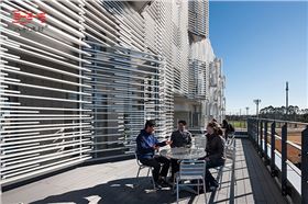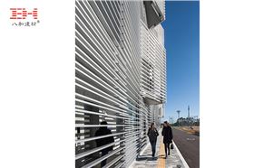 日本城西大學(xué)國(guó)際學(xué)生宿舍建筑表皮由不同尺寸的成品鋁制百葉窗組成,每個(gè)懸臂在最大化的延長(zhǎng)以傳遞豎向荷載,在立面和剖滿(mǎn)上都創(chuàng)造了交織的紋理效果。