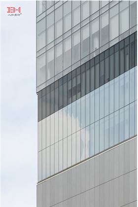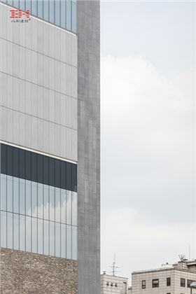 石材、玻璃、鋁,三種質(zhì)感的外墻有機(jī)組合,質(zhì)感以及色彩搭巧妙,組成了一個(gè)灰色系的具有現(xiàn)代感的建筑。石材紋理給建筑外墻帶來了質(zhì)樸厚重之感;玻璃外墻為該建筑帶來了通透的質(zhì)感;陽極氧化鋁單板表面紋理本身具有很強(qiáng)的現(xiàn)代感,又能很好地與其他材質(zhì)相搭配,平衡了建筑外墻的質(zhì)感與色彩搭配。