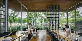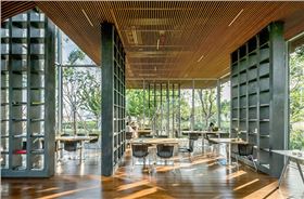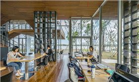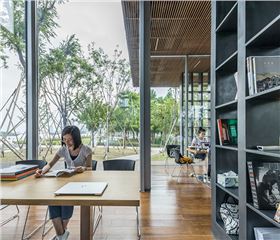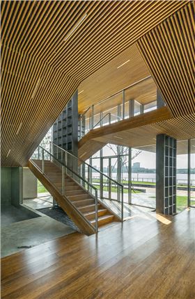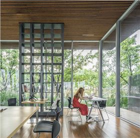 格樓書屋位于上海徐匯區(qū)濱江公園,基地四周被開闊的江景和茂密的綠樹環(huán)繞。在開放的自然中,我們希望這座通透的書屋在融入環(huán)境的同時(shí),為人提供親切舒適的內(nèi)在空間。
