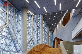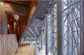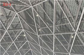 上海虹橋藝術(shù)中心的東立面和南立面,采用了玻璃加鋁金屬拉伸網(wǎng)幕墻的幕墻系統(tǒng),相應(yīng)的空間內(nèi)部采用鋁金屬拉伸網(wǎng)天花吊頂與之呼應(yīng),無(wú)論室內(nèi)室外,建筑的美觀和通透性都得到了很大的提升。