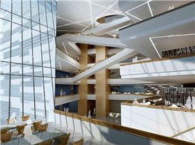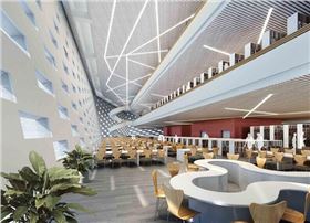河北工業(yè)大學(xué)圖書(shū)館位于整個(gè)校區(qū)三個(gè)主要軸線的交點(diǎn)處,南邊為教學(xué)樓群,北邊為生活區(qū)和體育建筑,并通過(guò)水域與它們隔開(kāi),形成了一個(gè)較為獨(dú)立的環(huán)境空間,為創(chuàng)建一個(gè)獨(dú)特漂亮的景觀創(chuàng)造了條件。外墻使用了大量的鋁單板幕墻材料,運(yùn)用不規(guī)則排列組合在一起,顯得更有特色。室內(nèi)天花,加上吸音材料,能有效的降低室內(nèi)的噪音,對(duì)圖片館這種環(huán)境作用顯得更突出。