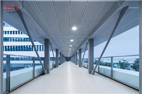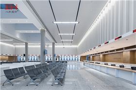 港珠澳大橋珠??诎洞髽鞘覂?nèi)多處采用了沖孔吸音鋁單板吊頂裝飾,包括大廳吊頂,下掛式帷幕,走廊天花等。