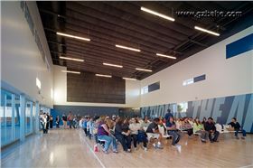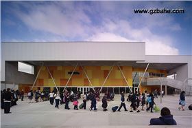 教學(xué)和住宅之間使用了一條寬敞無障礙的坡道,這個寬敞的空間成為學(xué)校的一個新節(jié)點(diǎn),有各種不同的功能,包括:一個室外的餐廳,學(xué)校入口,圖書館入口和一個新的二層陽臺,可以從上面的新美術(shù)室和原有的教室進(jìn)入。這個陽臺也將提供可一個講壇/講臺,可用于較大的集會場所。