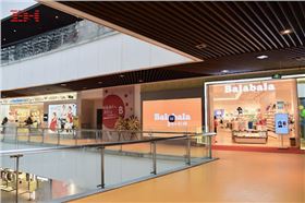 上海長(zhǎng)風(fēng)大悅城部分天花吊頂采用了型材鋁方通、木紋型材鋁方通裝飾,尤其是一到五樓的中庭走廊天花,從中庭一樓往上看,統(tǒng)一的褐色木紋型材鋁方通天花吊頂條形排列,斜排、豎排、橫排,很具視覺沖擊力。