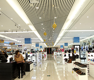 購物中心通道天花-鋁方通吊頂具有流暢的線條性,常應(yīng)用于通道天花