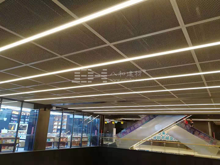 金屬拉伸網(wǎng)天花吊頂是使用鋁板經(jīng)沖剪、拉伸而成的具有菱形孔眼的板狀網(wǎng)。金屬拉伸網(wǎng)天花具有很高的透光率,可以很好的起到屏蔽裝飾的作用,又能將原建筑的美感展示出來。