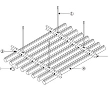 O型鋁圓管吊頂安裝相對簡單,安裝時按設(shè)計要求根據(jù)安裝節(jié)點圖拉好線,把吊桿用膨脹螺絲固定在天花板上,把定位龍骨固定在吊桿上,調(diào)至水平,最后用螺絲在定位孔連接O型鋁方通吊頂。