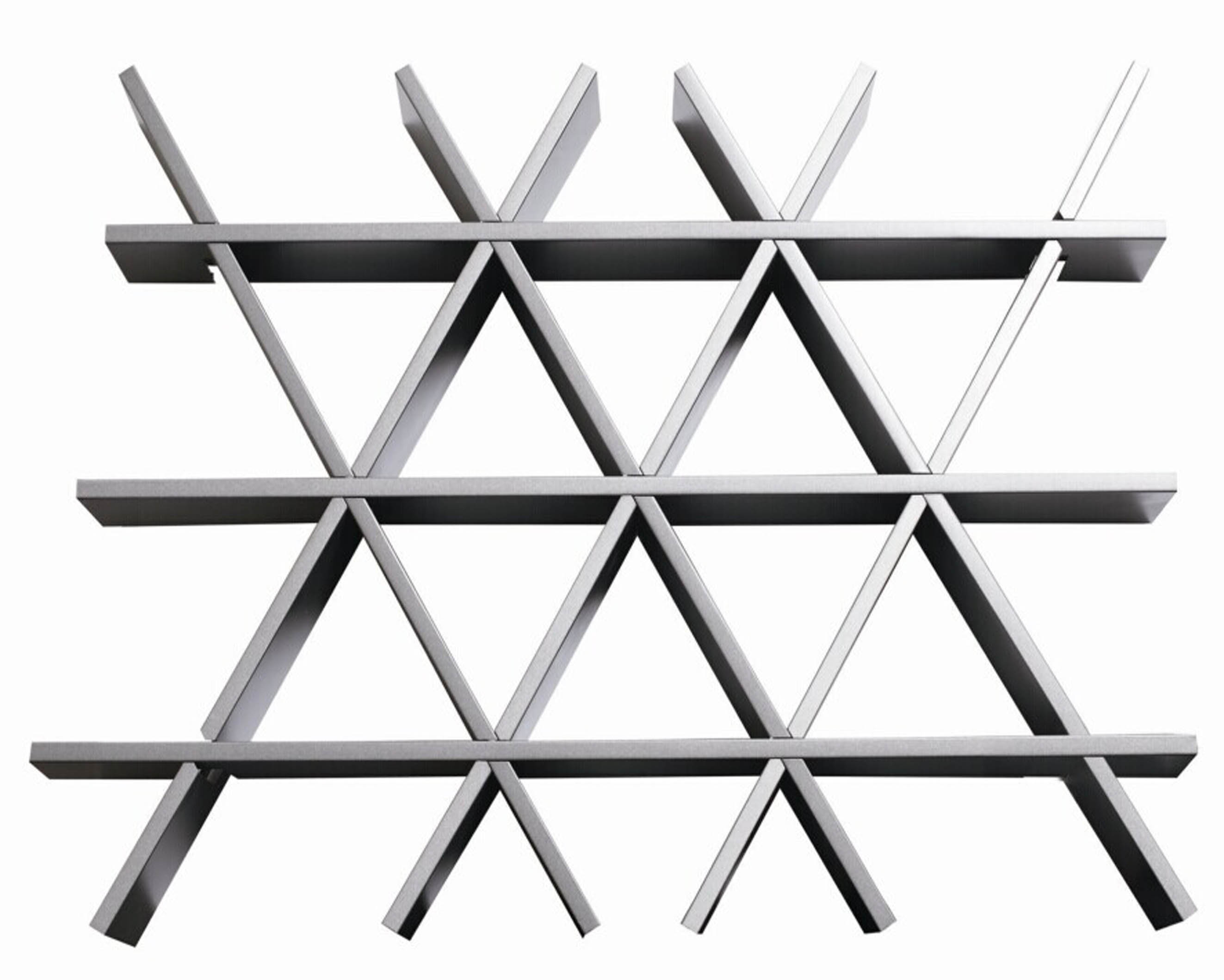 三角形鋁格柵吊頂是用直線構(gòu)畫成的幾何圖形,金屬三角形格柵天花簡約、通透、強烈的三角形幾何符號與金屬材質(zhì)的完美結(jié)合,充分的展示出后現(xiàn)代元素的簡單、時尚、個性。