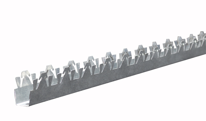 4、將防風龍骨防風齒邊壓開,然后將S型條扣板按順序扣掛在龍骨上,最后把齒邊壓回來。